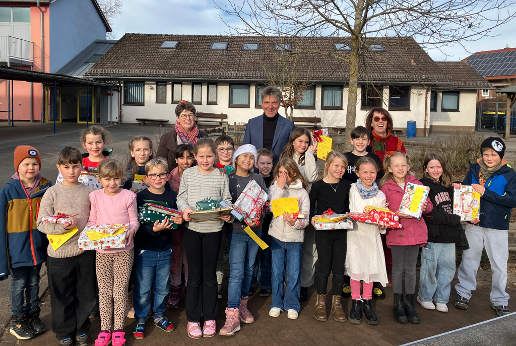 Für die Grundschule in der Stried bedankte sich Schulleiterin Elke Dahmen. „In der Grundschule haben wir alle Kinder aktiv eingebunden. Sie haben die Geschenke für die Klassengemeinschaft ausgewählt – so freuen sich nicht einzelne, sondern viele.“